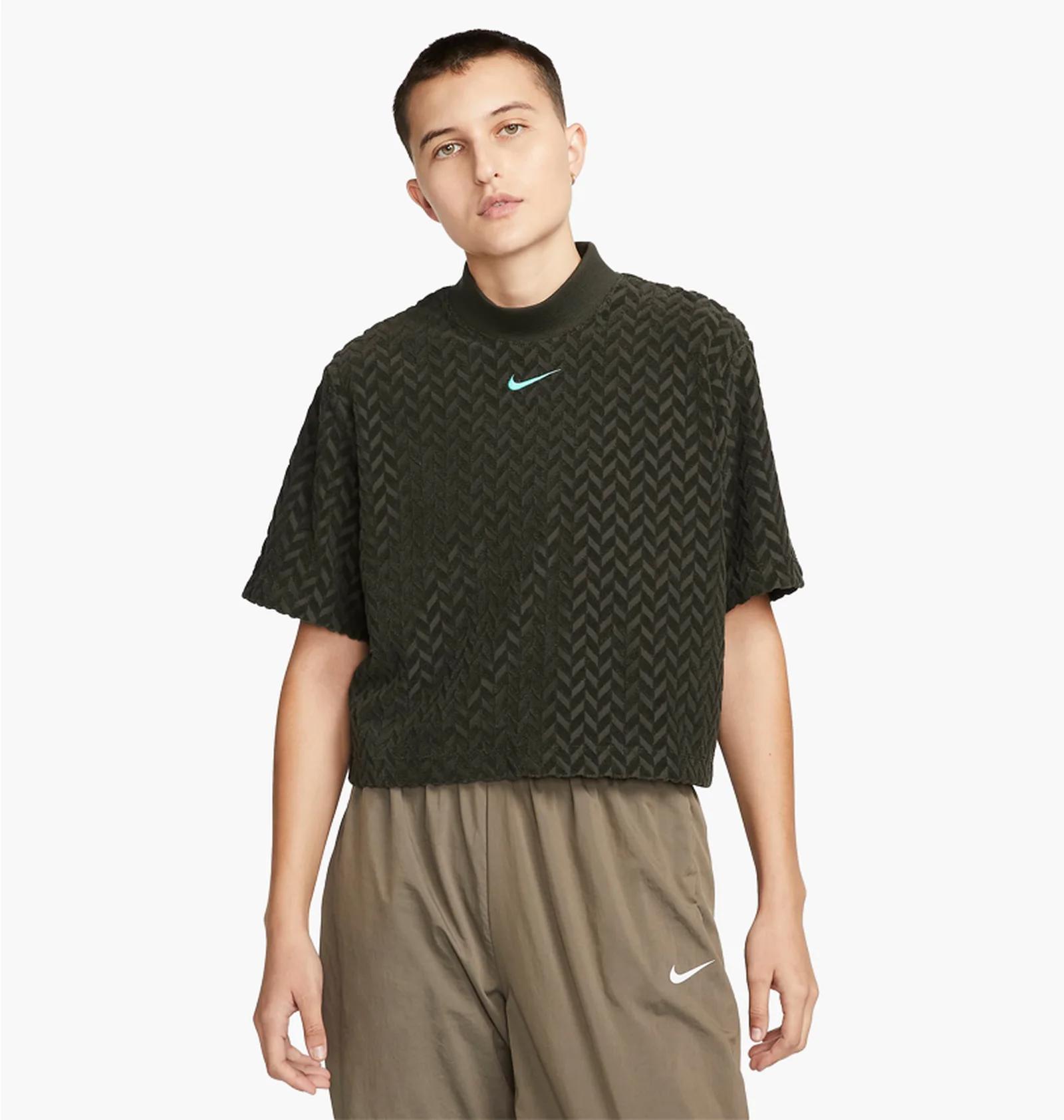Футболка жіноча Nike Sportswear Everyday Modern Womens Allover Jacquard Boxy Top Olive (DQ6788-355)